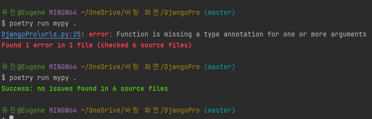 poetry run mypy . #모든파일에 mypy 실행한다.