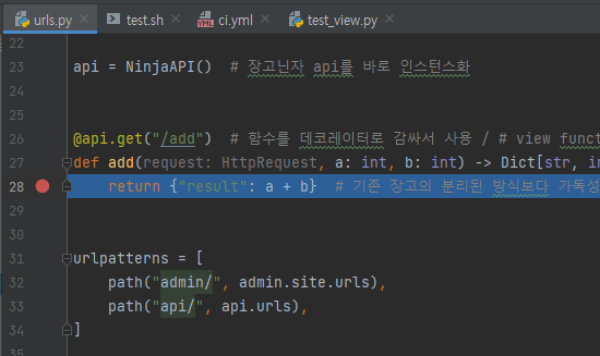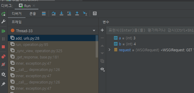 -urls.py에서 중단점표시, 디버깅 확인하기